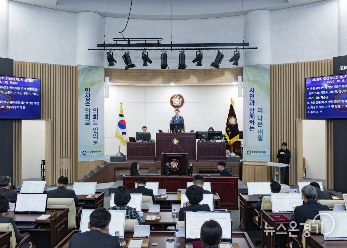 뉴스온경기 | 화성특례시의회는 8일 오전 10시, 의회 본회의장에서 제246회 제2차 정례회 제2차 본회의를 개의하고 5분 자유발언과 시정질문, 동탄 유통3부지 개발 갈등 조정 특별위원회 공동위원장 선임의 건, '화성시 행정기구 및 정원 조례 전부개정조례안' 등의 안건을 심의·의결했다.