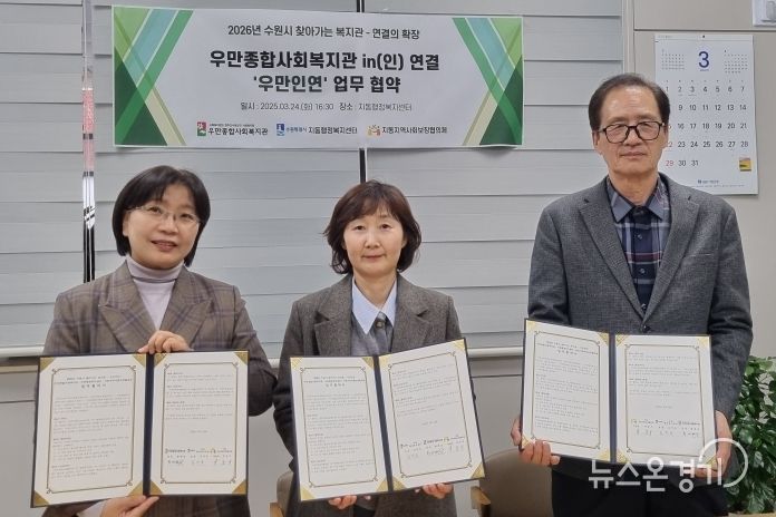 뉴스온경기 | 수원시 팔달구 지동은 지난 24일, 우만종합사회복지관, 지동 지역사회보장협의체와 함께 '2026년 수원시 찾아가는 복지관 사업' 추진을 위한 업무협약을 체결했다.