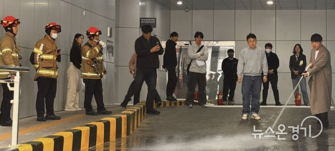 훈련은 화재 발생 시 행동 요령 교육을 시작으로 ▲연기 발생 상황을 가정한 대피 훈련 ▲교육용 소화기 사용 실습 ▲옥내 소화전 살수 실습 순으로 진행됐으며, 참가자들은 실제 화재 상황에 대비한 대응 능력을 체득했다.