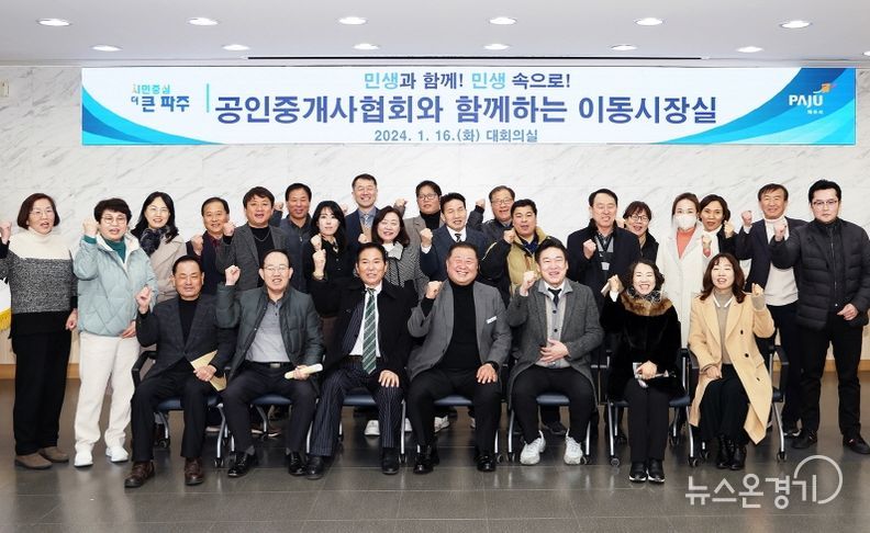 뉴스온경기 한민규 기자 | 파주시는 지난 16일 공인중개사협회 파주시지회 회원들과 함께 하는 이동시장실을 열고, 현재 추진 중인 여러 개발사업의 진행 상황을 공유하고 부동산시장 활성화를 위한 의견을 나눴다.