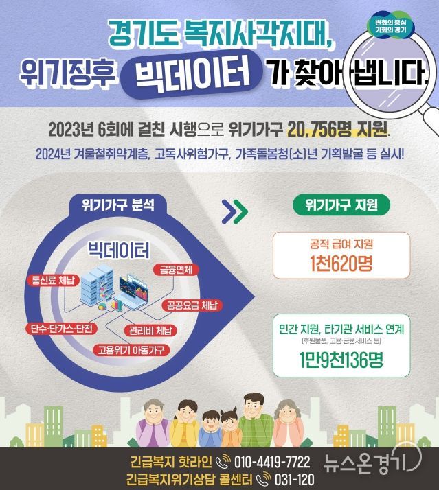 도는 빅데이터를 통해 위기가구 징후를 포착 시 31개 시군과 함께 공적지원과 민간 자원 연계 등 최적의 서비스를 제공해 복지 사각지대 해소를 추진했다.