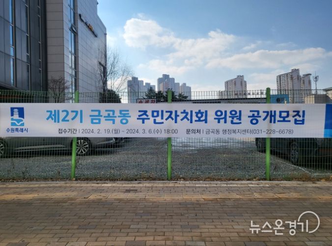 뉴스온경기 한민규 기자 | 수원시 권선구 금곡동은 2월 19일부터 3월 6일까지 ‘제2기 금곡동 주민자치회 위원’ 28명을 공개모집 한다고 밝혔다.