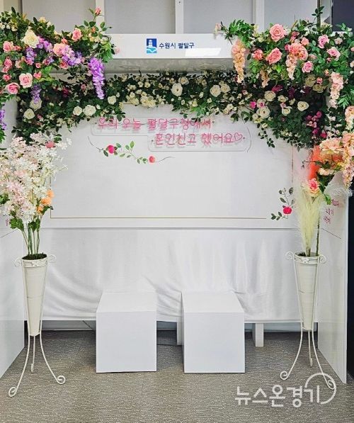 뉴스온경기 | 수원시 팔달구는 종합민원실 내 ‘혼인신고 기념 포토존’을 새단장했다.