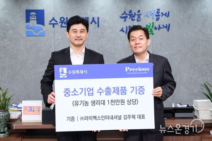 뉴스온경기 | 수원 기업 ㈜라이맥스 인터내셔널이 “취약계층 시민에게 전달해 달라”며 수원시에 1000만 원 상당 여성위생용품을 기증했다.