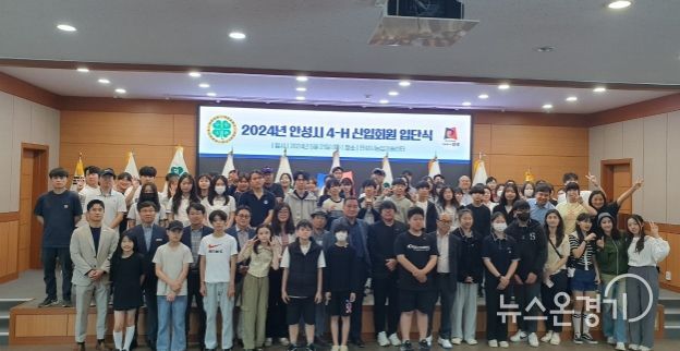 뉴스온경기 | 안성시는 지난 21일 안성시농업기술센터에서 ‘2024년 안성시4-H 신입회원 입단식’을 성황리에 개최했다. 이번 4-H 신입회원 입단식에서는 안성 관내 8개 학교(광덕초, 서운중, 양성중, 가온고, 경기창조고, 한경국립대, 중앙대, 신나는학교) 4-H회원 및 지도교사 70여명과 청년농업인 4-H회원 20여명이 참석했다. 학교별 대표학생 4-H 뱃지 수여과 4-H 이념 특강을 통해 농업·농촌의 유지발전에 함께하는 4-H회원으로서 마음가짐과 소속감을 가질 수 있는 계기를 마련했다.