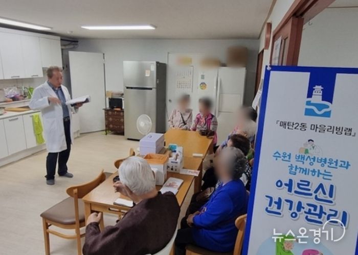 ‘마을리빙랩’ 공모사업의 일환으로 매탄2동 주민자치회는 어르신 비중이 높은 매탄2동에서 경로당을 직접 찾아가 사전에 연계한 수원 백성병원 전문의 및 광교노인복지관 심리상담사와 함께 여름철 건강관리법을 교육하고 맥박·혈압 측정 등 기초 진료와 마음 안정을 위한 심리 상담도 진행했다.