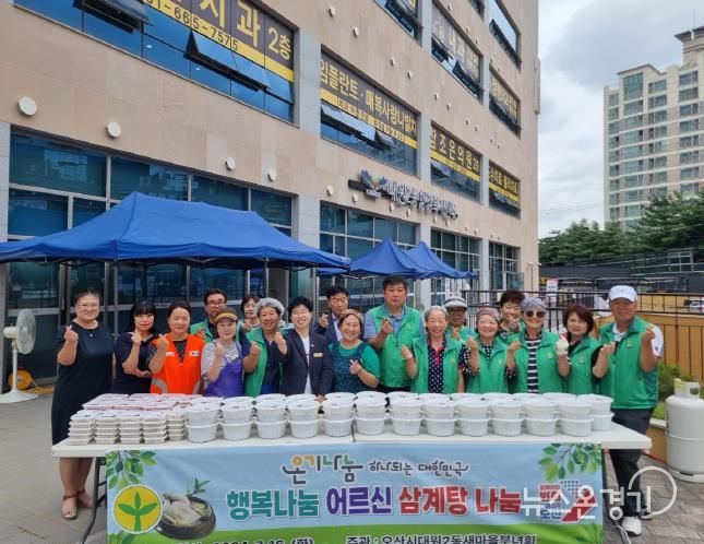 뉴스온경기 | 오산시 대원2동 새마을부녀회는 지난 16일 오산시 대원2동행정복지센터 앞마당에서 지역 내 어르신들의 건강한 여름나기를 위한 삼계탕 나눔행사를 개최했다.