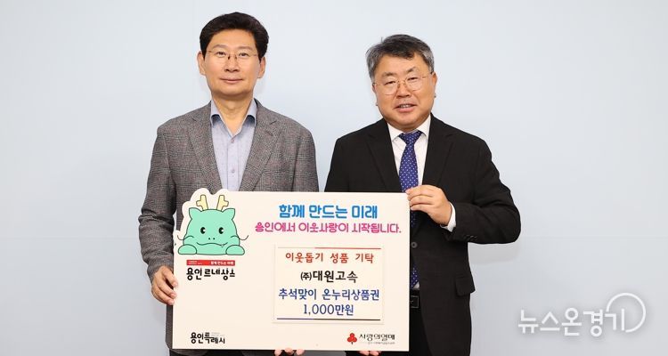 지난 6일 ㈜대원고속 허덕행 상무이사 등 관계자 2명은 이상일 용인특례시장실을 방문해 지역 내 취약계층을 돕는 데 써 달라며 1000만원 상당의 온누리 상품권을 전달했다.