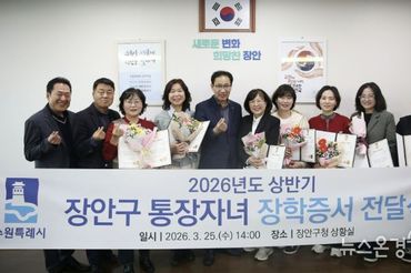 수원시 장안구, 2026년 상반기 통장자녀 장학증서 전달식 개최