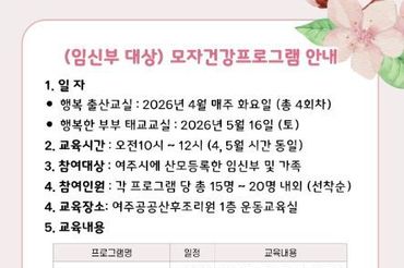 여주시보건소, 2026년 상반기 '출산준비교실' 운영