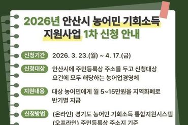 안산시, '농어민 기회소득 지원사업' 1차 신청 접수