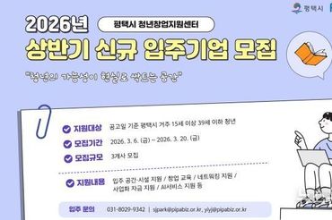 평택시와 평택산업진흥원, 2026년 청년창업지원센터 신규 입주기업 공개모집