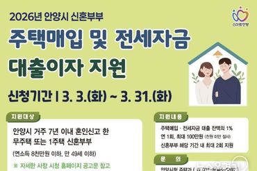 안양시, 신혼부부 주택매입・전세 대출이자 지원…주거비 부담 완화