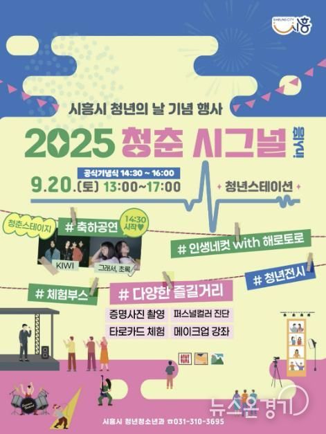 뉴스온경기 | 시흥시는 오는 9월 20일 토요일, 청년스테이션에서 2025년 시흥시 청년의 날 기념 행사 '청춘시그널 in 시흥'을 개최한다.