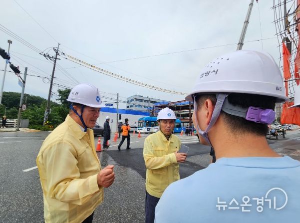 뉴스온경기 | 최대호 안양시장이 16일 발생한 비계 전도사고 현장에 방문해 신속한 사고 수습과 안전조치를 지시했다.