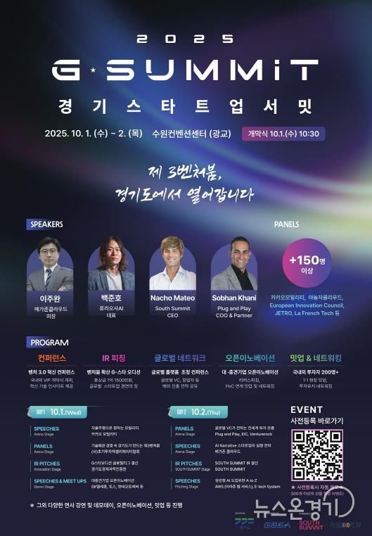 뉴스온경기 | 국내 최고 수준의 글로벌 스타트업 투자 박람회인 ‘경기 스타트업 서밋(G-SUMMIT)’이 오는 10월 1일부터 2일까지 수원컨벤션센터에서 열린다.