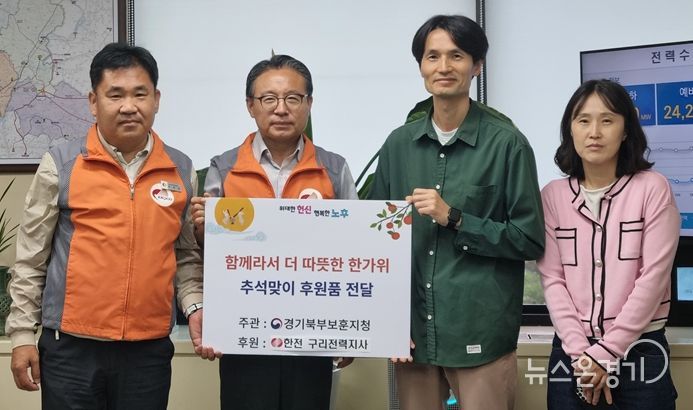 뉴스온경기 | 경기북부보훈지청은 지난 9월 24일, 한전 구리전력지사(김재훈 지사장, 추한웅 지회위원장)의 후원으로 구리·가평 지역에 거주하는 재가복지대상 국가유공자 어르신들게 영양식품 뉴케어 32박스(150만원 상당)을 전달했다고 밝혔다.