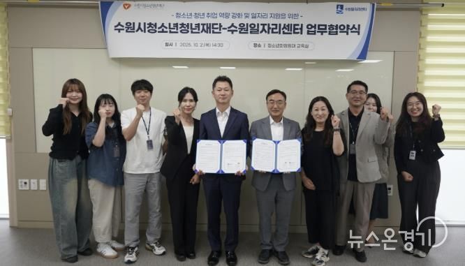 뉴스온경기 | 수원시청소년청년재단과 수원일자리센터는 10월 2일, 청소년청년의 취업 역량 강화와 일자리 지원을 위한 업무협약(MOU)을 체결했다.