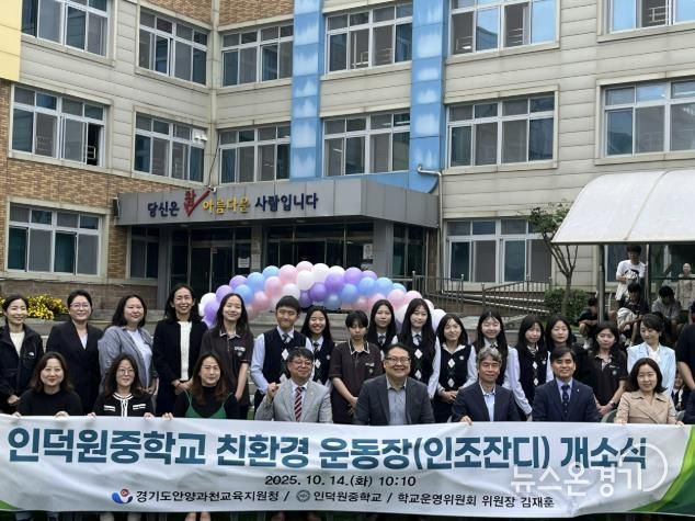 뉴스온경기 | 경기도의회 여성가족평생교육위원회 김재훈 의원(국민의힘, 안양4) 14일 인덕원중학교 친환경 운동장 개소식에 참석해 학생들의 건강하고 활기찬 학교생활을 위한 공간 탄생을 축하했다.