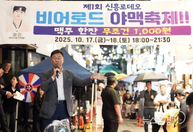 뉴스온경기 | 신상진 성남시장은 17일 저녁 신흥로데오거리 종합시장 먹자골목에서 열린 ‘제1회 신흥로데오 비어로드 야맥축제’ 개막식에 참석해 관계자들을 격려하고 시민들과 소통했다.
