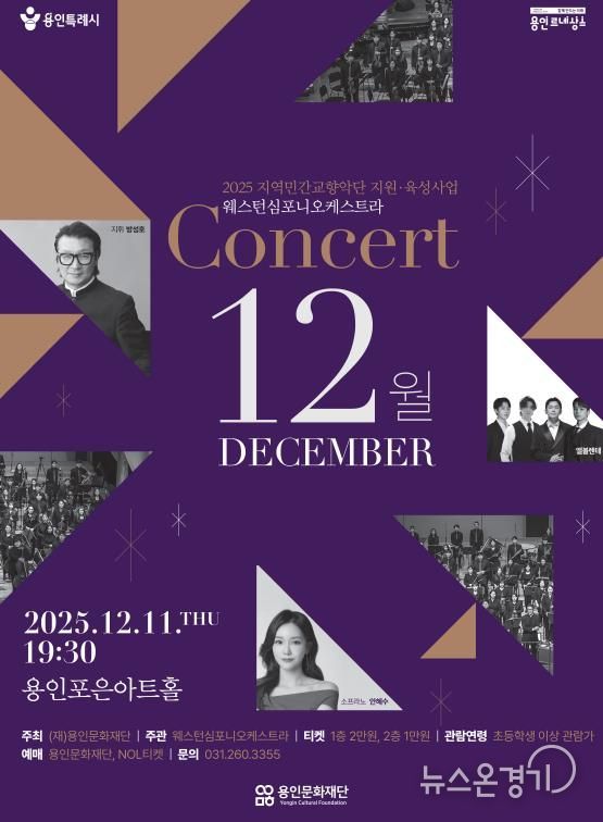 뉴스온경기 | 용인문화재단은 오는 12월 11일 오후 7시 30분, 용인포은아트홀에서 웨스턴심포니오케스트라 '콘서트 ‘12월’' 공연을 개최한다.