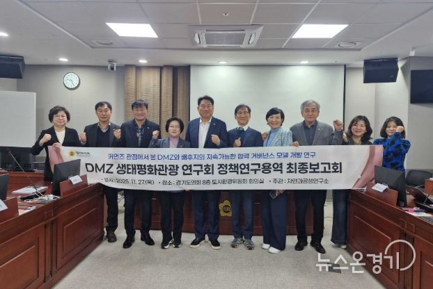 뉴스온경기 | 경기도의회 의원연구단체인 DMZ생태평화관광 연구회(회장 오준환 의원)는 지난 27일 경기도의회 도시환경위원회 회의실에서 '커먼즈 관점에서 본 DMZ와 배후지의 지속가능한 협력 거버넌스 모델 개발 연구' 용역 최종보고회를 개최했다.