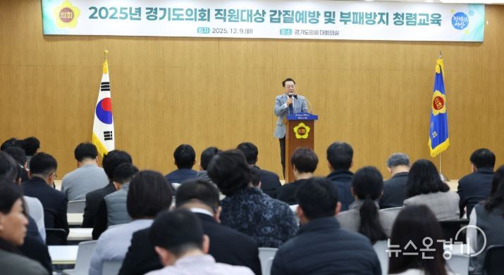 뉴스온경기 | 경기도의회는 9일 오전 의회 대회의실에서 전 직원을 대상으로 ‘갑질예방 및 부패방지 청렴교육’을 실시했다.