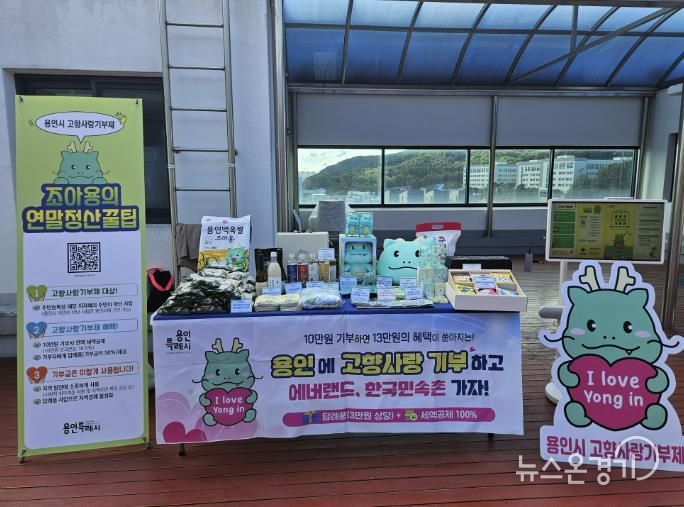 시는 고향사랑기부제에 참여한 기부자에게 에버랜드·한국민속촌 입장권, 조아용 굿즈, 백옥쌀, 한돈세트, 용인와이페이 등 80여 종의 답례품을 제공하고 있으며, 2026년부터는 뽕잎·블루베리·송화버섯 가공식품을 비롯해 여리향 쌀, 유정란, 전통식품 등 용인시 지정 특산품과 용인투어패스 등 지역 관광·체험 상품을 포함한 16종의 답례품을 추가로 선보일 예정이다.