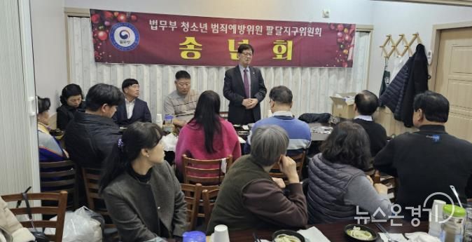 뉴스온경기 | 수원시 법무부 청소년범죄예방위원 팔달지구위원회는 지난 22일 연말을 맞이하여 송년회를 개최했다. 이날 송년회에는 팔달구청장을 비롯해 시의원, 가정복지과장 등 직원과 청소년범죄예방위원 팔달지구위원회 위원 등 총 30여 명이 참석했다.