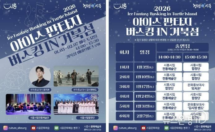 뉴스온경기 | 시흥시는 지난 연말에 진행된 ‘2025 시흥 사운드 오브 윈터’의 열기를 잇는 후속 문화예술 프로그램으로, 겨울철 거북섬을 찾는 시민과 관광객에게 풍성한 즐길 거리를 제공하고자 ‘2026 아이스 판타지 버스킹 인 거북섬’을 운영한다.