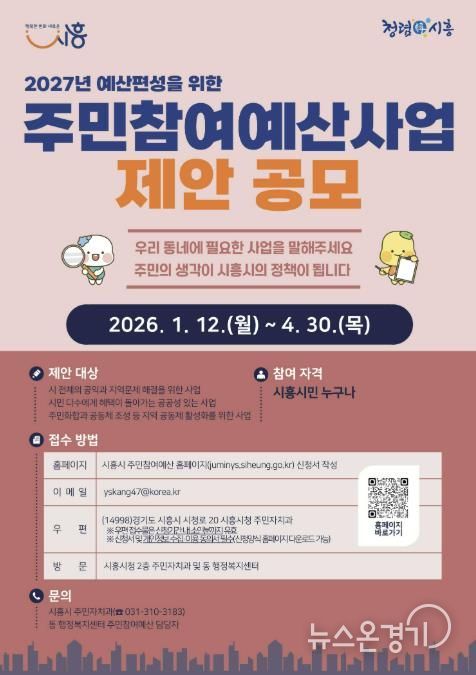 뉴스온경기 | 시흥시는 오는 4월 30일까지 주민들이 직접 사업을 제안하는 ‘시흥시 주민참여예산 제안’을 신청받는다.