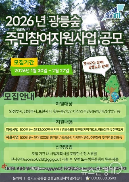뉴스온경기 | 경기도가 광릉숲 생물권보전지역 활성화를 위해 2026년 광릉숲 주민참여지원사업 참여자를 모집한다.
