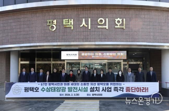 또한 “평택시의회 의원 일동은 평택호를 지켜야 할 책무를 가지고 졸속적이고 일방적으로 추진되고 있는 평택호 수상태양광 발전시설 설치 사업을 즉각 중단할 것 요구한다”고 밝혔다.