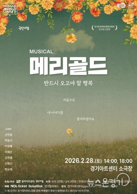 뉴스온경기 | 경기도와 경기아트센터는 오는 28일 오후 2시와 6시 경기아트센터 소극장에서 뮤지컬 ‘메리골드’ 공연을 선보인다.