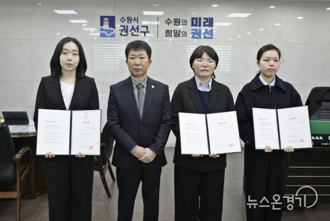 뉴스온경기 | 수원시 권선구는 지난 5일, 권선구청 2층 집무실에서 신규 공직자 3명이 참석한 가운데 임용장 수여식을 개최했다.