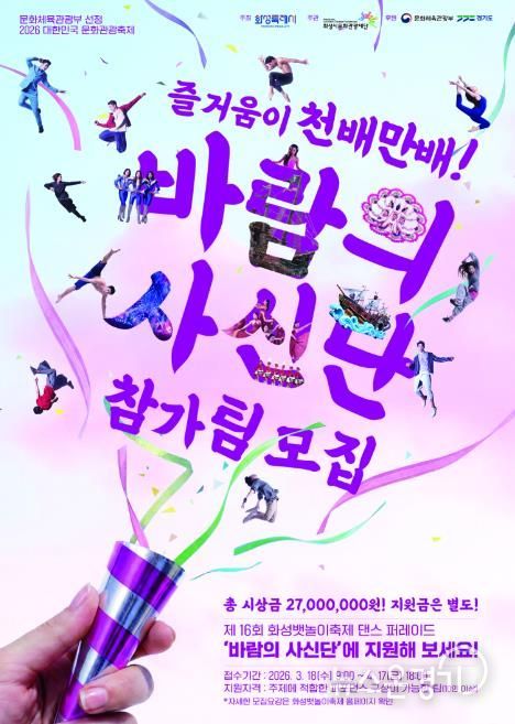 뉴스온경기 | (재)화성시문화관광재단은 제16회 화성 뱃놀이 축제의 주인공이 될 ‘바람의 사신단 댄스 퍼레이드‘경연 참가팀을 모집한다.