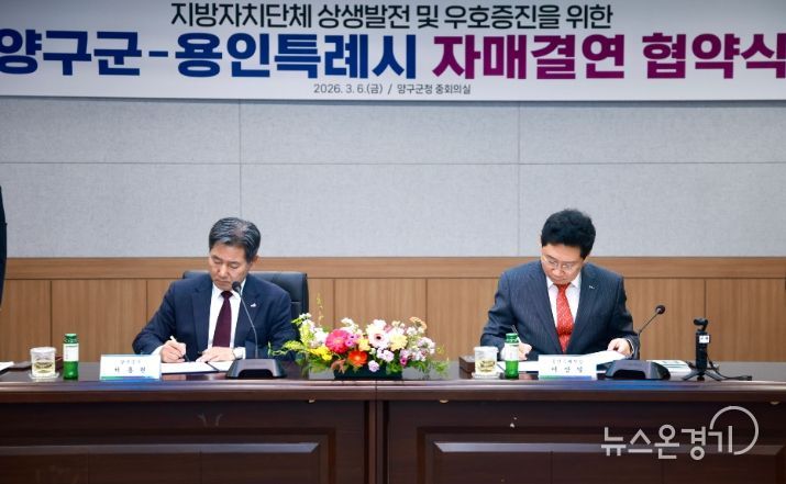 뉴스온경기 | 용인특례시는 6일 강원특별자치도 양구군과 자매결연을 하고, 두 도시의 교류와 발전을 위해 적극 협력하기로 했다.