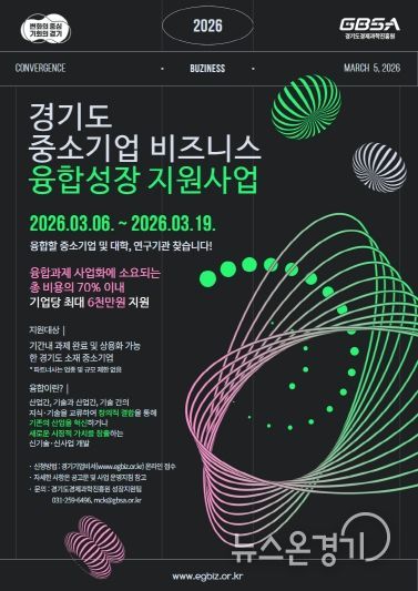 뉴스온경기 | 경기도와 (재)경기도경제과학진흥원이 도내 중소기업의 혁신 성장과 새로운 비즈니스 모델 발굴을 돕는 ‘2026년 중소기업 비즈니스 융합성장 지원사업’의 참여기업을 모집한다.