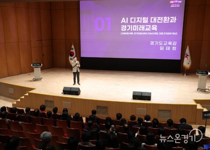 주요 순서는 ▲인공지능(AI) 디지털 대전환과 경기미래교육 주제 발표(교육의 본질회복, 경기미래교육의 지속과 확장, 미래조직문화 혁신) ▲인공지능(AI) 전환 시대에 따른 교육정책 방향 제시 ▲경기교육 디지털 플랫폼 ‘지원이(G-ONE)’ 안내 등으로 진행했다.