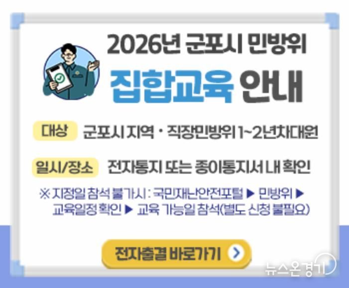 뉴스온경기 | 군포시는 민방위대원의 비상 시 대응 역량 강화를 위해 ‘2026년 민방위 기본교육’을 실시한다.