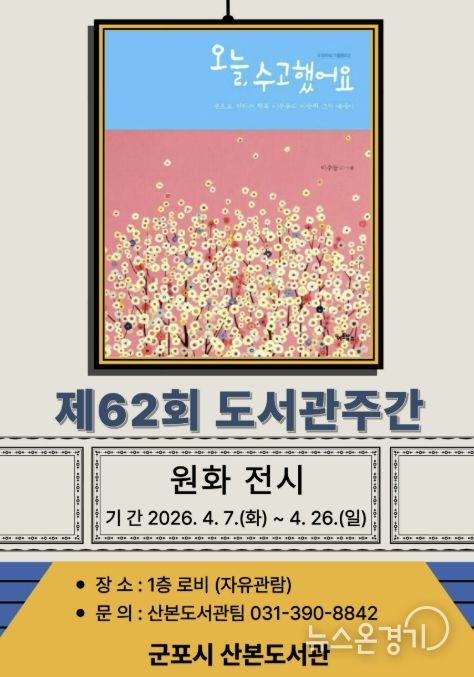 뉴스온경기 | 군포시 산본도서관은 도서관주간을 맞아 시민들의 독서문화 확산과 책을 통한 공감의 시간을 마련하기 위해 작가와의 만남, 북토크, 원화전시 등 다양한 프로그램을 운영한다.