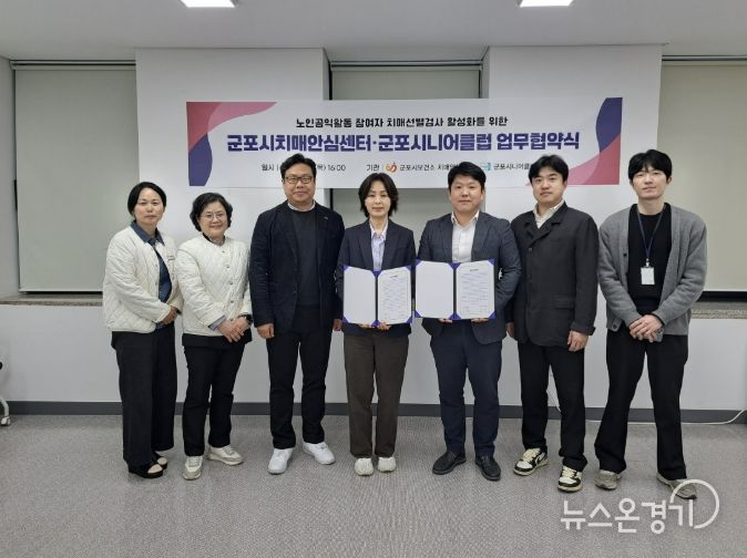 뉴스온경기 | 군포시치매안심센터는 4월 9일 군포시시니어클럽과 업무협약을 체결하고 노인공익활동 참여자를 대상으로 한 치매선별검사 확대에 나선다고 밝혔다.