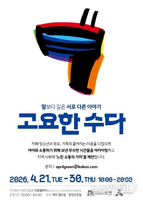 뉴스온경기 | 안성시 시옷갤러리는 오는 4월 21일부터 4월 30일까지 자폐 청소년과 그 가족이 함께 참여하는 전시 《고요한 수다》를 개최한다고 밝혔다.