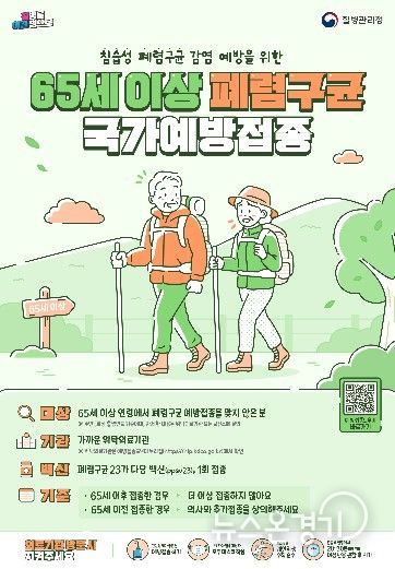 폐렴구균 예방접종은 65세 이상을 대상으로 평생 1회 무료 지원되고 있으며, 주소지와 관계없이 가까운 위탁의료기관에서 접종받을 수 있다.