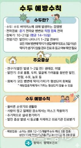 뉴스온경기 | 평택시는 최근 전국적으로 수두 환자가 증가하는 가운데, 관내에서도 수두 신고가 지속됨에 따라 집단시설 및 가정 내 예방수칙 준수를 당부했다.