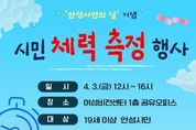 뉴스온경기 | 안성시보건소는 ‘안성 시민의 날’을 맞아 시민의 건강 증진과 올바른 생활 습관 형성을 돕기 위한 ‘시민 체력 측정 행사’를 개최한다고 밝혔다. 이번 행사는 오는 4월 3일 오후 12시부터 4시까지 안성시 여성비전센터 1층 공유오피스에서 진행된다. 현장에서는 체력 측정뿐만 아니라 심뇌혈관 질환 예방, 신체활동, 금연, 구강 관리 등 건강 인식 향상을 위한 다양한 건강증진 부스도 함께 운영될 예정이다. 체력 측정은 1인당 약 30분이 소요되며, 원활한 운영을 위해 오는 3월 27일까지 선착순 80명을 대상으로 사전 접수를 받는다. 신청은 홍보물에 포함된 QR코드 또는 온라인 설문 링크를 통해 할 수 있다. 당일 현장 접수도 가능하지만, 대기 시간이 발생할 수 있어 사전 예약이 권장된다. 상세 측정 절차는 ▲혈압 체크 ▲체격 검사(신장, 체중, 체성분 분석) ▲근력 측정 ▲심폐지구력(65세 이상은 협응력) 측정 순이며, 측정 후에는 결과지 제공과 함께 1:1 맞춤형 상담이 이뤄진다. 단, 안전을 위해 행사 당일 혈압이 고혈압 기준(수축기 160mmHg 또는 이완기 100mmHg 이상)을 초과할 경우 참