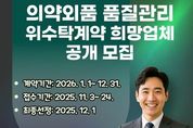 뉴스온경기 | 경기도보건환경연구원은 오는 24일까지 ‘2026년 의약외품 품질검사 위·수탁계약’ 참여를 희망하는 제조·수입업체를 모집한다. ‘의약품 등 제조업 및 수입자의 시설기준령’에 따르면 의약외품은 품질검사를 위한 시설을 갖추고 자체 품질관리를 하거나 식약처 지정 시험검사기관과의 품질관리 위수탁 계약을 통해 품질을 관리해야 한다. 연구원은 2008년부터 매년 품질관리 위수탁 계약을 통해 품질검사 시설을 갖추지 못한 도내 소규모 의약외품 업체의 품질검사를 수행하고 있다. 지원 대상은 도내 사업을 등록한 의약외품 제조 및 수입업체이며, 품질관리 지원 분야는 보건용 마스크와 생리대 등 도민의 생활과 밀접한 의약외품이다. 제출 서류와 양식 등 모집 관련 자세한 사항은 경기도와 경기도보건환경연구원 누리집을 통해 확인할 수 있으며, 작성된 자료는 전자우편으로 접수할 수 있다. 연구원은 24일까지 희망업체를 모집하고 경기북부 소재, 신규 및 소규모 의약외품 업체를 우선으로 선정해 12월 1일 발표할 계획이다.
