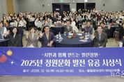 뉴스온경기 | 수원특례시는 18일 팔달문화센터 예당마루홀에서 ‘2025년 정원문화 발전 유공 시상식’을 열었다. 정원문화 발전에 기여한 시민과 단체 등에 수원시장상(47개)과 수원시의회 의장상(7개)을 수여했다. 시상은 표창장·감사패 수여, 시민정원 경연대회, 베스트 관리상, 올해의 정원인상 등 분야별로 진행됐다. 지난 10월 효원공원에서 열렸던 ‘2025년 수원시 시민정원 경연대회’ 수상팀들을 시상했다. 하나의 물방울이 만들어내는 무한한 생명의 파장을 표현한 ‘완뚝원정대’의 ‘리플(ripple) 가든’이 대상을 받았다. 어린 꽃이 꿈꾸는 산의 이미지를 담은 ‘진달래동산 꽃뫼’ 팀의 ‘어린 꽃이 꿈꾸는 뫼(산)’이 최우수상, 빛과 생명의 흐름을 표현한 ‘빛나게’ 팀의 ‘Flowing Light, Flowering Life(플로잉 라이트, 플라워링 라이프’가 우수상을 받았다. 이재준 수원시장은 “도심 속 열린 정원은 시민에게 휴식처가 되고, 기후 위기 대응에는 힘이 된다”며 “정원을 가꾼 수상자 노력에 감사하며 시민 일상에 초록이 늘도록 지원을 이어가겠다”고 말했다.
