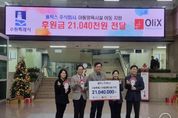 뉴스온경기 | 올릭스(주)가 “아동 양육시설에 전달해 달라”며 수원시에 성금 2104만 원을 기부했다. 올릭스 이동기 대표이사, 강충길 사장은 18일 수원시청을 방문해 김은주 여성가족국장에게 성금을 전달했다. 올릭스는 2020년부터 2023년까지 수원시 아동양육시설에 꾸준히 성금을 후원했다. 지금까지 기부 금액이 총 6800만 원에 이른다. 기부금은 직원들의 자발적 모금과 회사 후원금으로 마련했다. 수원시는 경기사회복지공동모금회 지정기탁 방식으로 경동원, 동광원, 꿈을키우는집, 수원나자렛집 등 아동 양육시설 4개소에 성금을 배분할 예정이다. 이동기 올릭스 대표이사는 “양육시설에서 사는 아동들이 따뜻한 겨울을 보내길 바라며 후원금을 준비했다”며 “아이들이 꿈을 꾸며 자라는 수원시가 됐으면 한다”고 말했다. 올릭스는 RNA 간섭 플랫폼 기술을 기반으로 다양한 질환에 대한 제3세대 혁신 신약을 개발하는 기업이다. 2020년 12월 ‘혁신형 제약기업’(보건복지부) 인증을 받았고, 2022년에는 ‘우수기업연구소’(과학기술정보통신부 주관)로 선정됐다.