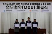 뉴스온경기 | 경기도미래세대재단은 12일 옛 경기도청사 신관 4층 대회의실에서 수원·성남·시흥시청소년청년재단과 ‘경기도 청년 정책 연계 및 협력체계 구축 업무협약’을 체결했다. 협약의 핵심은 ▲청년 분야 공동사업 기획 ▲정책·사업 정보 공유 ▲참여 기반 강화다. 4개 재단은 청년 일경험, 진로·취업, 사회참여를 잇는 연계형 프로그램을 공동 발굴하고, 공동 조사·연구와 정책 제안으로 협력 범위를 넓힐 계획이다. 참여기구와 네트워크 교류도 확대한다. 프로젝트와 캠페인을 함께 추진하고, 전문 인력과 강사, 공간, 콘텐츠, 운영 노하우 등 인적·물적 자원을 상호 연계한다. 협약 이후에는 정례 협의체를 운영해 공동 과제를 발굴하고 협력 사업을 단계적으로 확대한다. 김현삼 경기도미래세대재단 대표이사는 “청소년기 경험이 청년기 지원으로 자연스럽게 이어지도록 재단 간 협력을 본격화하는 출발점”이라며 “공동 과제를 꾸준히 발굴하고 협업 체계를 촘촘히 다져 정책이 현장에서 성과로 이어지게 하겠다”라고 말했다.